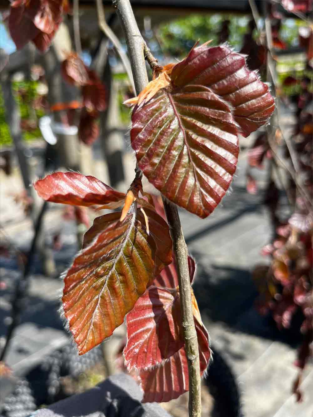 Fagus sylvatica ‘Purpurea Pendula’, hängblodbok, är ett mindre, hängande träd med purpurröda blad. Sorten har inget naturligt toppskott. Den ympas ofta på låg stam och sen kan du själv bestämma höjden genom att binda upp skott efterhand. Solitär i trädgårdar och mindre parker. Tyvärr ganska ovanlig.