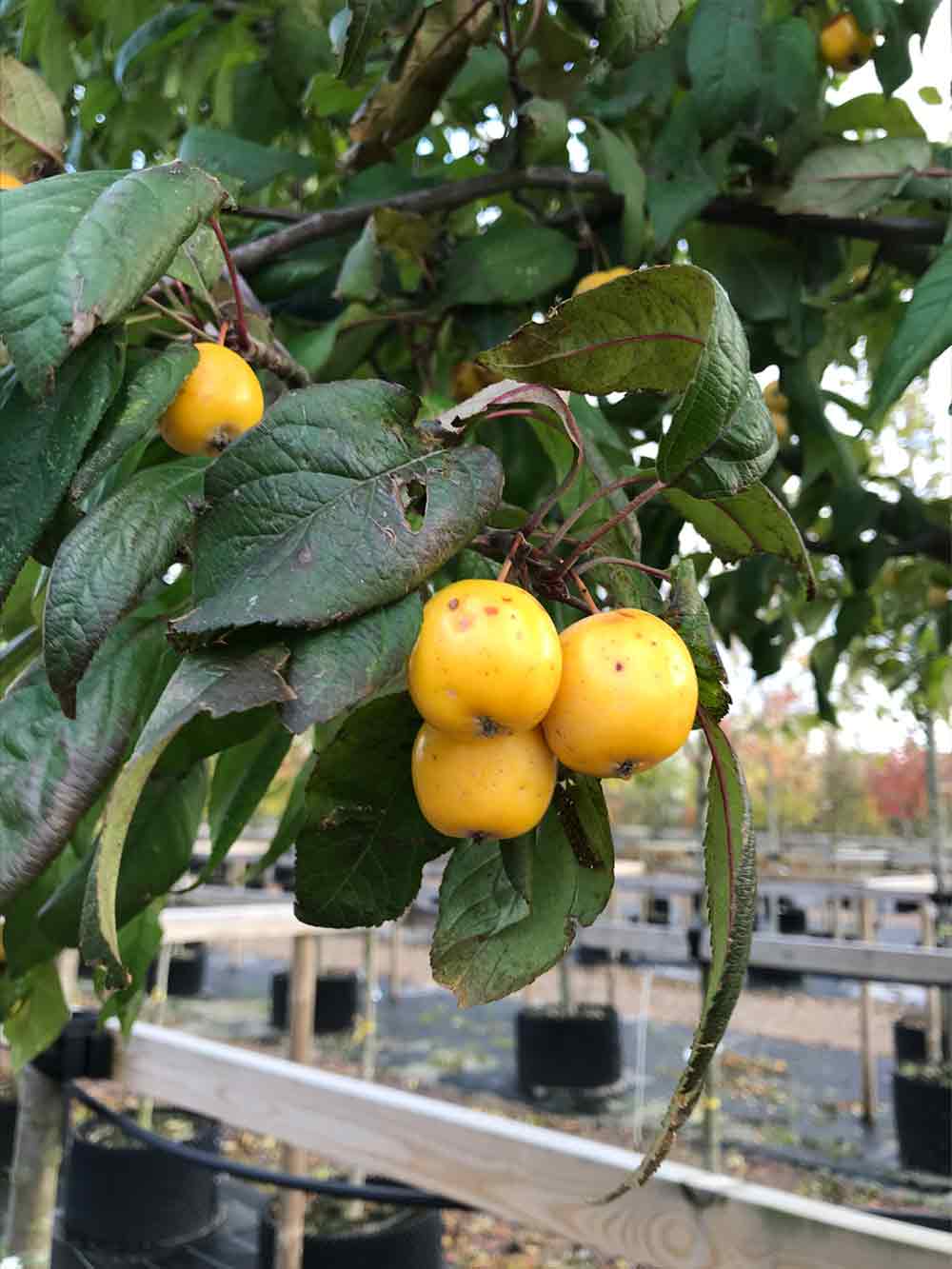 Buskar och träd som bjuder på både vacker blomning och fruktsättning.